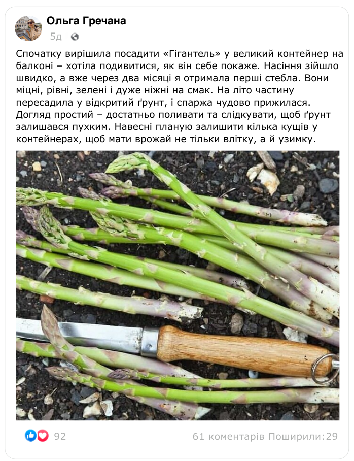 Які вже вирощують один з найбільш смачніших сортів спаржі!